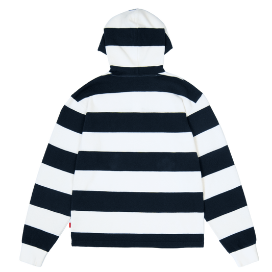 Striped Hooded Rugby Polo Knit [Navy/White]